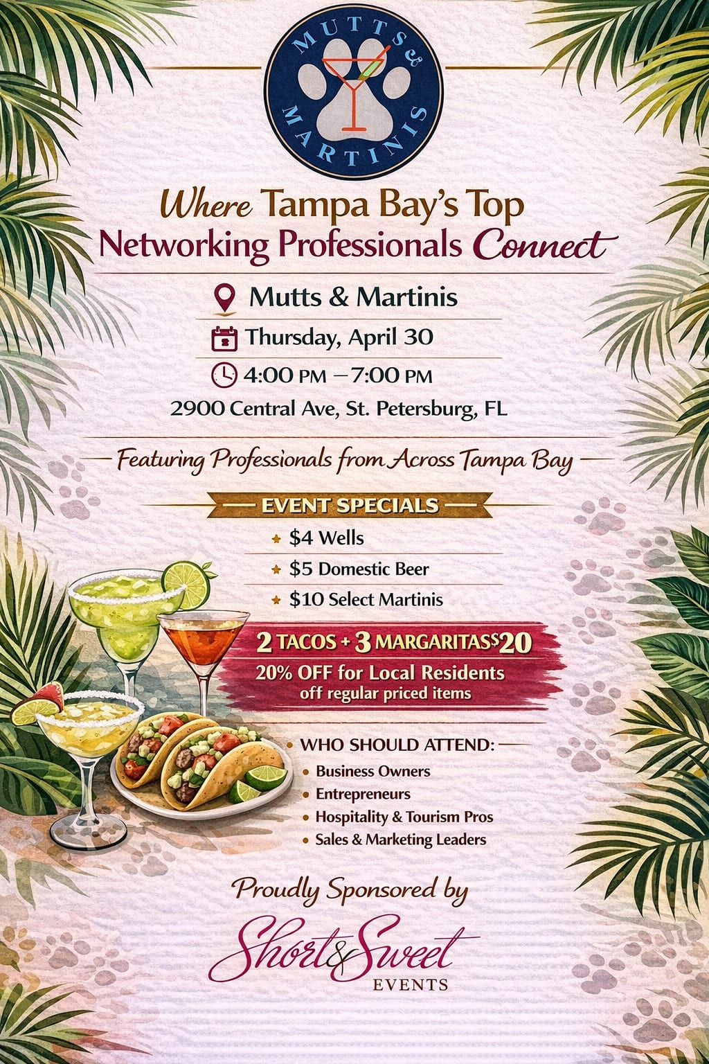 Join us for an evening of connection, collaboration, and community at Mutts & Martinis in St. Petersburg.